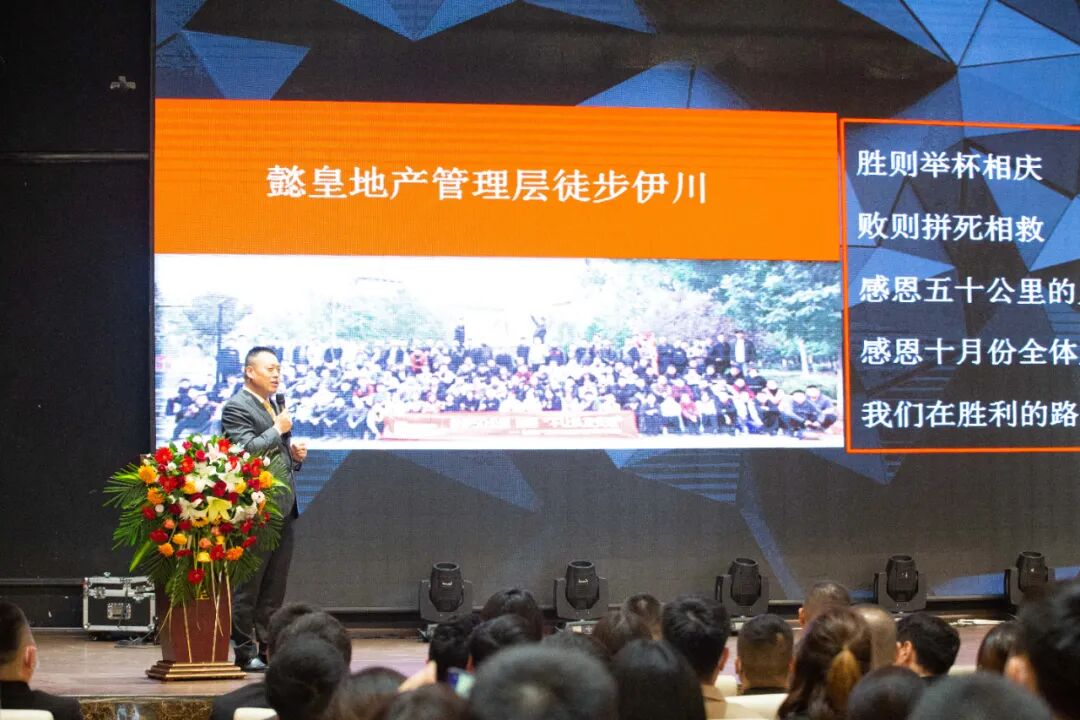 會(huì)議開(kāi)始,懿皇地產(chǎn)總經(jīng)理白松朝先生帶大家回憶了10月上旬管理層徒步伊川50KM的精彩歷程,他說(shuō)道:“勝則舉杯相慶,敗則拼死相救!感恩50KM的靈魂之路,路只有自己走了才知道是什么滋味,什么叫徹悟靈魂!感謝全體參與成員的共同努力,我們順利的戰(zhàn)勝失敗,超越勝利,進(jìn)入了我們自己的軌道上,為完成同一個(gè)目標(biāo)而共同努力!”
