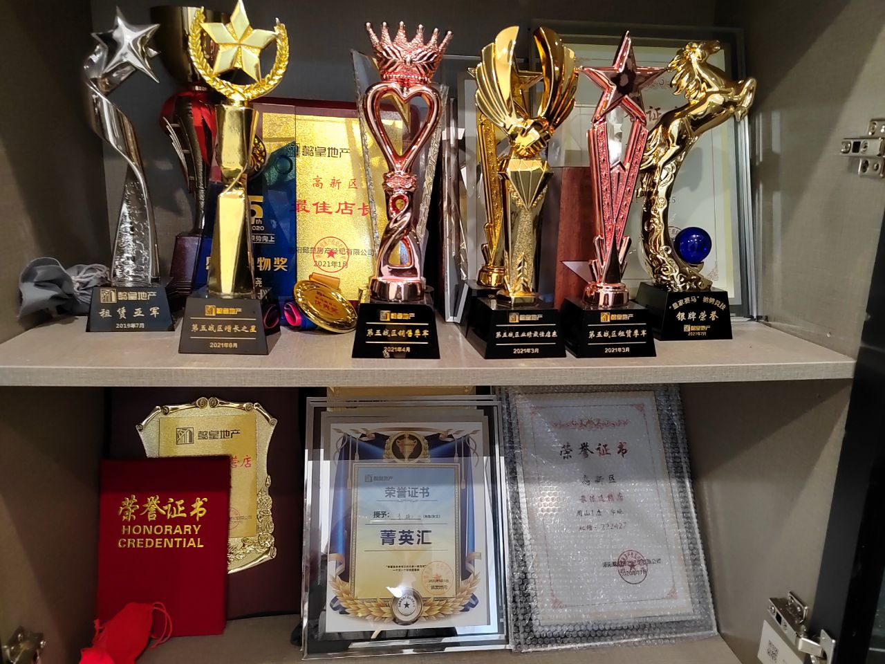 展架上擺放著各種各樣的獎(jiǎng)杯和證書,團(tuán)隊(duì)風(fēng)采墻貼著門店團(tuán)建的溫馨照片,工位上的大家討論著今天的帶看,整個(gè)店面環(huán)繞著一種積極向上的氛圍。