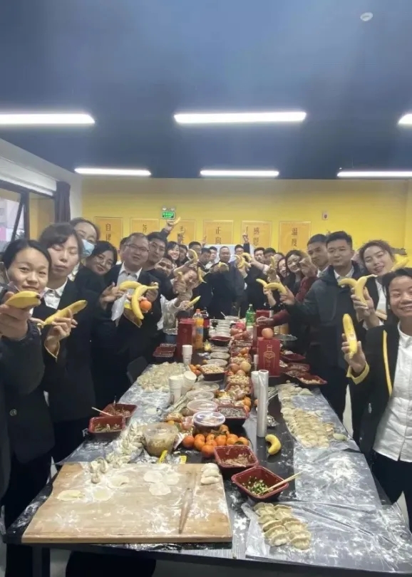 “冬至不端餃子碗,凍掉耳朵沒人管?!痹谖覈狈?,每年冬至日有吃餃子的習(xí)俗,餃子有“消寒”之意,香噴噴的餃子端上桌,再寒冷的冬夜也變得熱氣騰騰,充滿了人間煙火味。懿皇地產(chǎn)的全體家人們每到冬至都會統(tǒng)一舉行歡度冬至包餃子活動,大家相聚一刻,共同做游戲、吃餃子、歡度佳節(jié)。