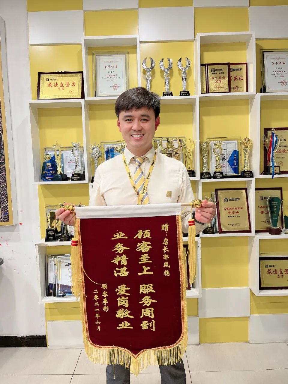 房東覺得這個(gè)小伙兒很靠譜,便把要出售的房源簽署懿皇獨(dú)家房源,最終在郭風(fēng)穩(wěn)的努力下,房子順利售出。阿姨十分感謝小郭,并提出要給予好處費(fèi)。小郭趕忙拒絕,覺得自己只是做了一名房產(chǎn)經(jīng)紀(jì)人應(yīng)該做的,最終阿姨多次到店感謝,并送上錦旗。