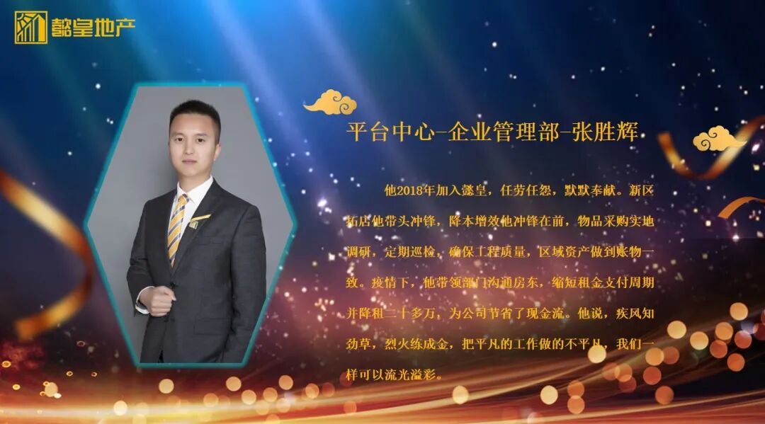 他2018年加入懿皇,任勞任怨,默默奉獻。新區(qū)拓店他帶頭沖鋒,降本增效他沖鋒在前,物品采購實地調(diào)研,定期巡檢,確保工程質(zhì)量,區(qū)域資產(chǎn)做到賬物一致。疫情下,他帶領(lǐng)部門溝通房東,縮短租金支付周期并降租二十多萬,為公司節(jié)省了現(xiàn)金流。他說,疾風知勁草,烈火練成金,把平凡的工作做的不平凡,我們一樣可以流光溢彩。