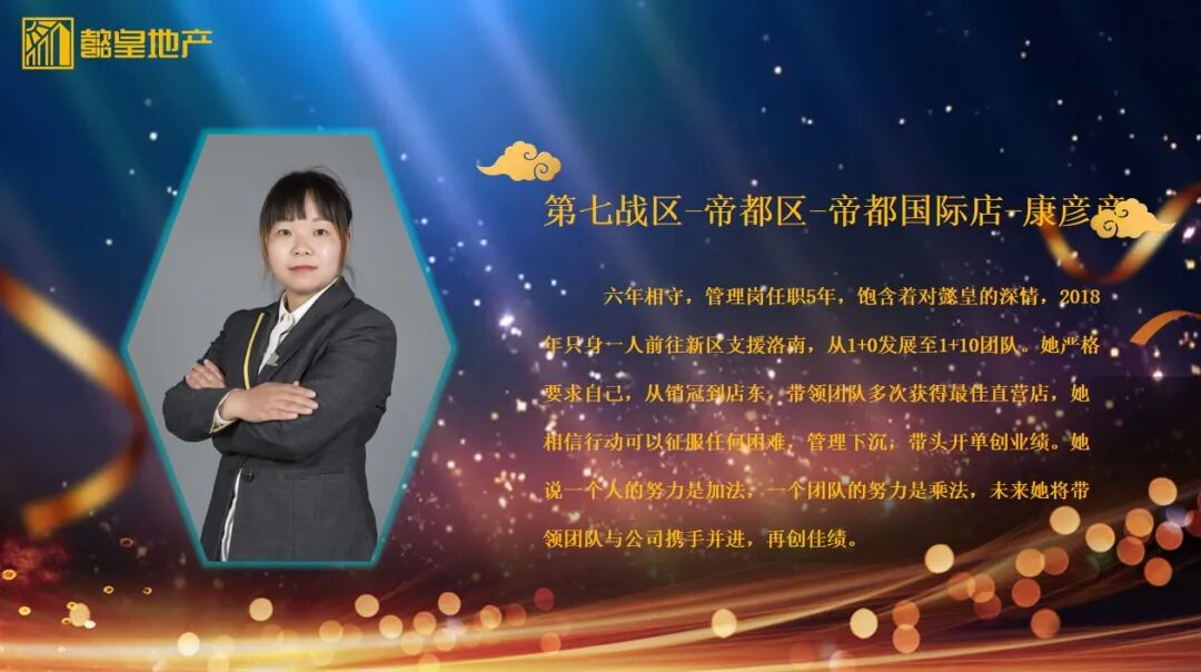 六年相守,管理崗任職5年,飽含著對懿皇的深情,2018年只身一人前往新區(qū)支援洛南,從1+0發(fā)展至1+10團隊。她嚴格要求自己,從銷冠到店東,帶領(lǐng)團隊多次獲得最佳直營店,她相信行動可以征服任何困難,管理下沉,帶頭開單創(chuàng)業(yè)績。她說一個人的努力是加法,一個團隊的努力是乘法,未來她將帶領(lǐng)團隊與公司攜手并進,再創(chuàng)佳績。